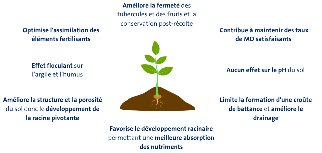 Contrairement au calcaire, il ne modifie pas le pH du sol, donc il convient aux sols dont le pH est déjà bon.