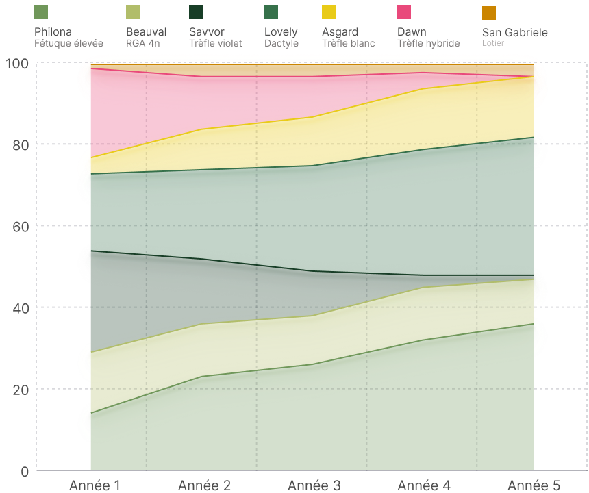 Les espèces et variétés présentes dans le mélange permettent d'être productif dans des conditions très diverses.