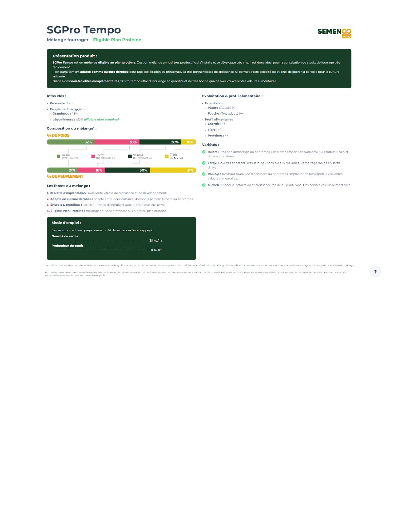 SGPro Tempo est composé de variétés élites complémentaires offrant du fourrage en quantité et de très bonne qualité avec d'excellentes valeurs alimentaires.