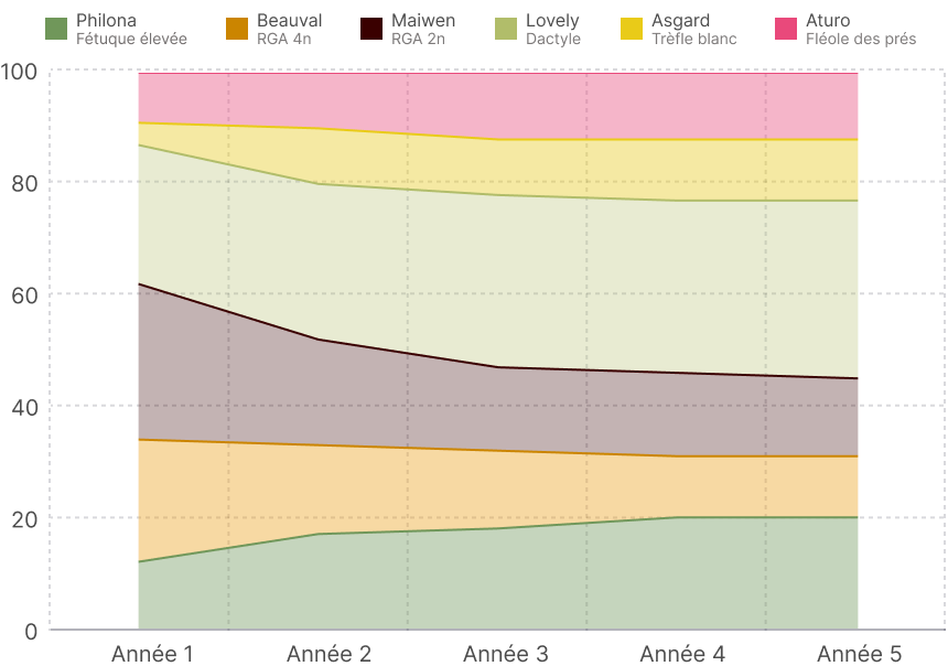 Il offre un fourrage de très bonne qualité et peut être exploité aussi bien en fauche que pâture et peut être exploité tôt au printemps.