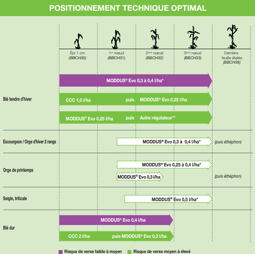 - Protection du rendement : La remarquable efficacité de MODDUS® Evo contre la verse garantit la préservation du rendement des céréales. Son influence sur la croissance des céréales leur permet d'exprimer pleinement leur potentiel de rendement.