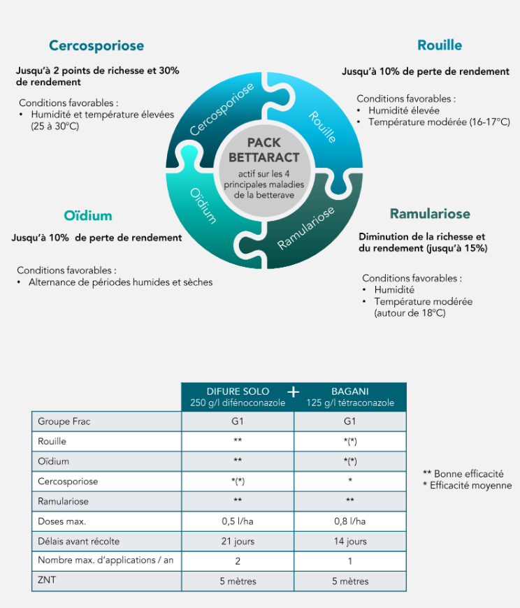 - sa polyvalence : actif sur les 4 principales maladies de la betterave